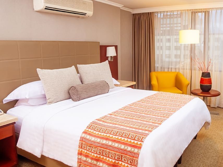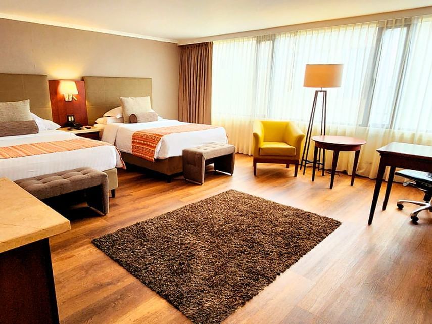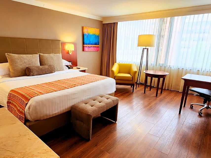 Vive una experiencia completa en uno de los mejores hoteles en Bogotá, ideal tanto para viajes de negocios como de descanso. Nuestras habitaciones combinan confort y estilo para ofrecerte un ambiente cálido y relajante. Además, contamos con espacios pensados para cubrir todas tus necesidades: área de coworking, salas y salones para reuniones y eventos, sala de ejercicios, spa con circuito hídrico, restaurante y Bar Café. Todo lo que buscas, en un solo lugar.