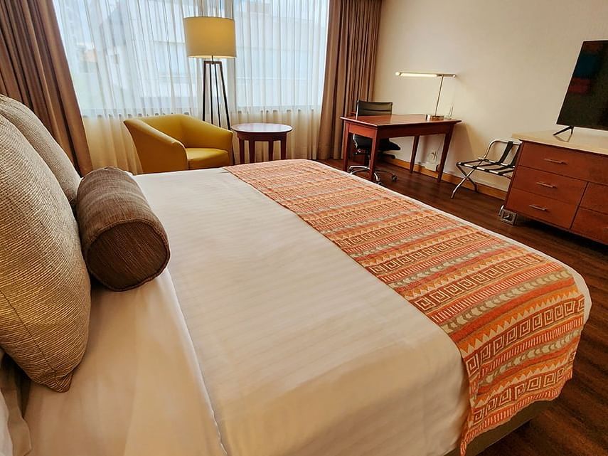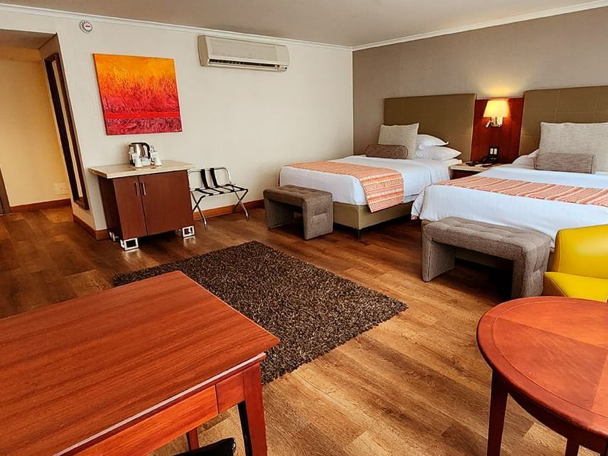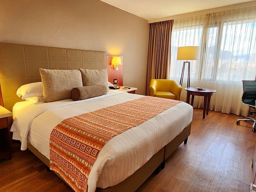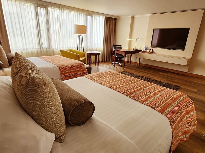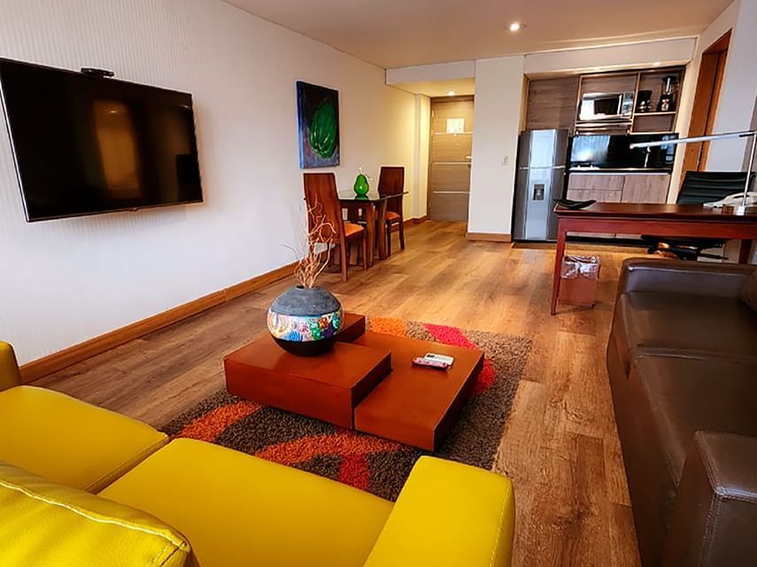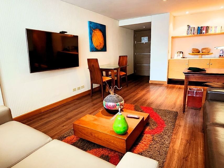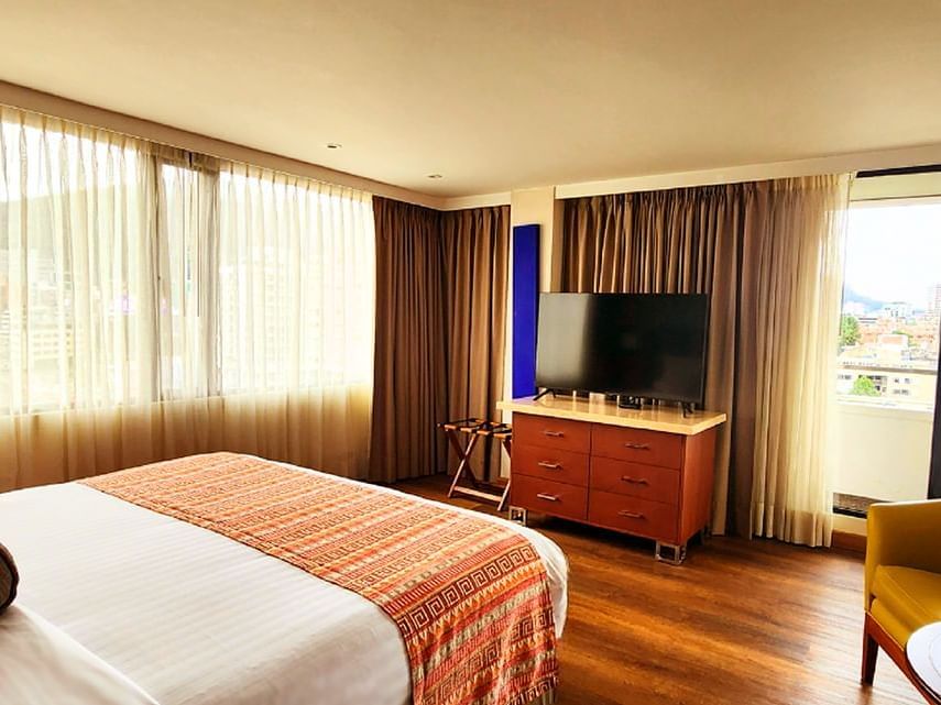 Vive una experiencia completa en uno de los mejores hoteles en Bogotá, ideal tanto para viajes de negocios como de descanso. Nuestras habitaciones combinan confort y estilo para ofrecerte un ambiente cálido y relajante. Además, contamos con espacios pensados para cubrir todas tus necesidades: área de coworking, salas y salones para reuniones y eventos, sala de ejercicios, spa con circuito hídrico, restaurante y Bar Café. Todo lo que buscas, en un solo lugar.
